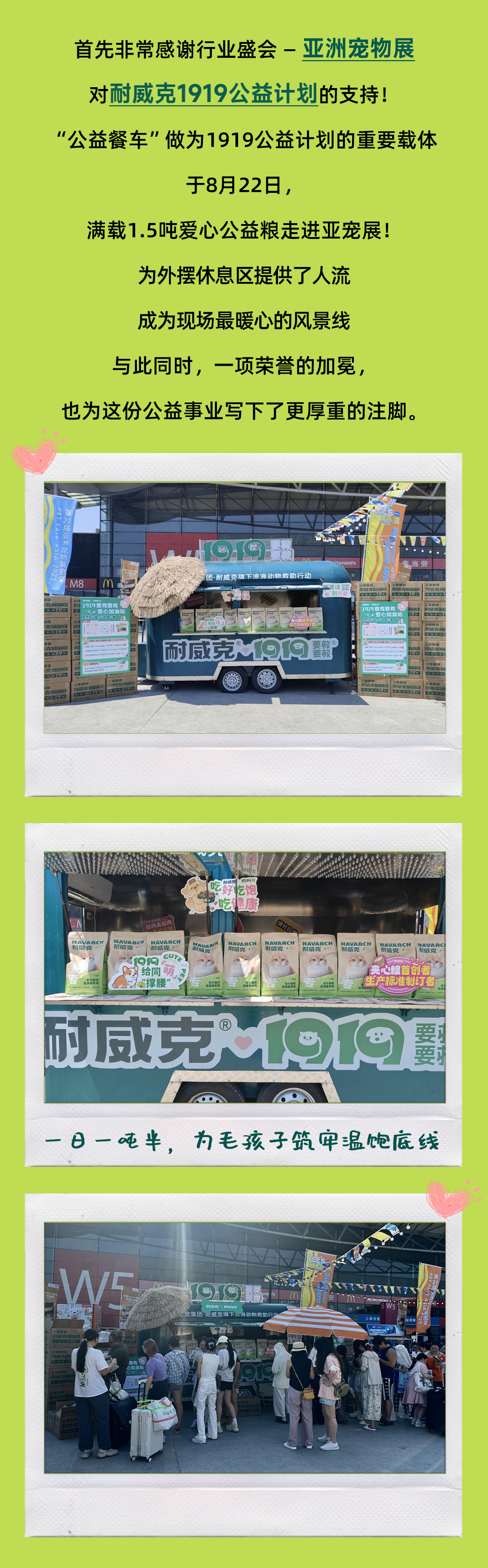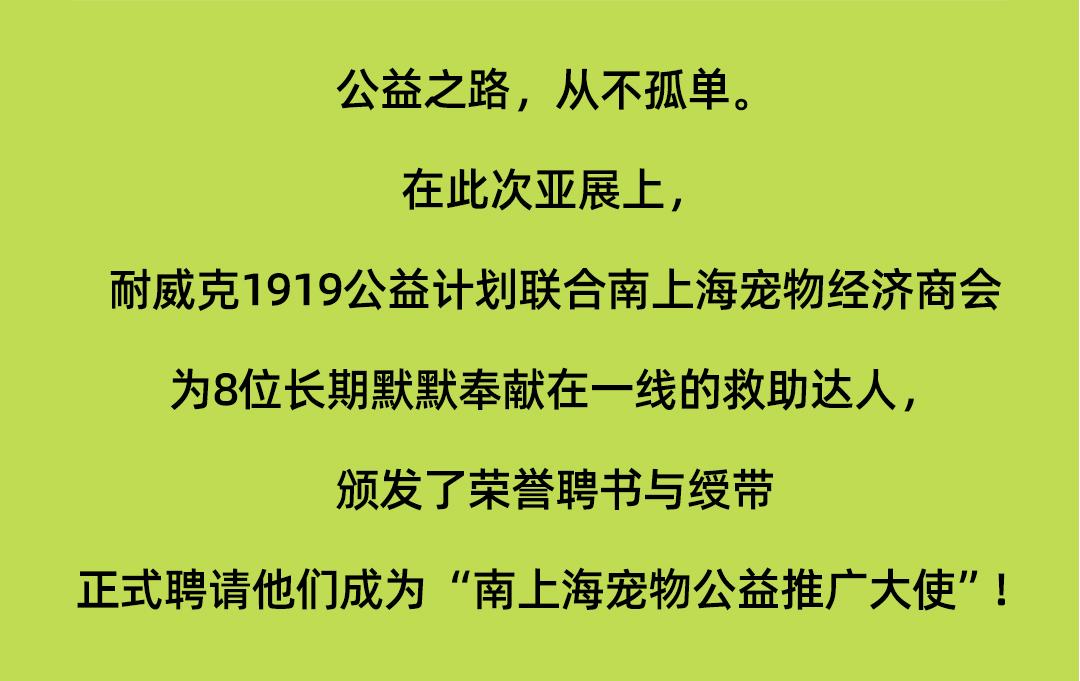 您當(dāng)前的位置:首頁(yè) > 關(guān)于耐威克 > 企業(yè)新聞 > 一日一噸半,為毛孩子筑牢溫飽底線!耐威克1919公益計(jì)劃走進(jìn)亞寵展!